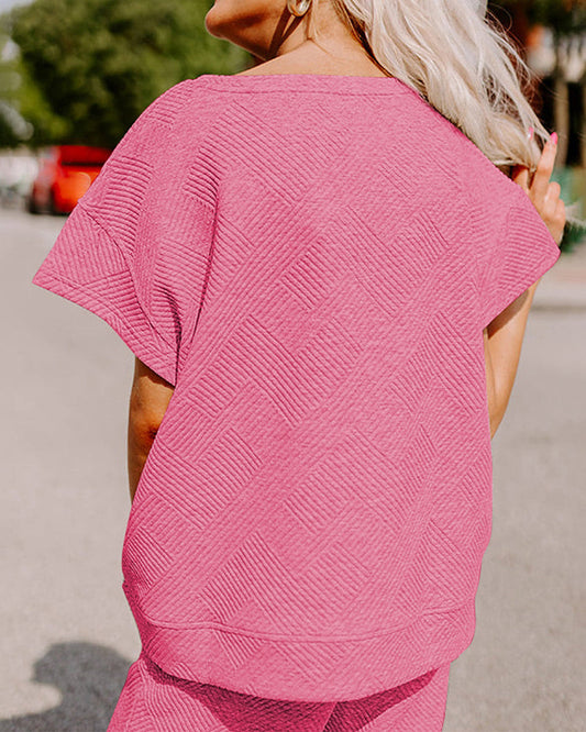 Textured Knit Two-Piece Lounge Set with Drawstring Waist