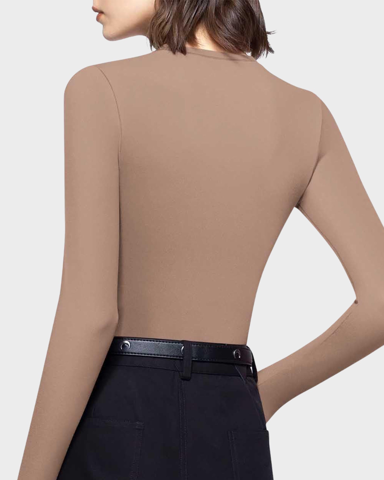 Meet your new go-to long sleeve tee — sleek, versatile, and designed to flatter. Crafted with a smooth, upgraded double-layer fabric that feels buttery soft yet fully opaque, this slim-fit top hugs your curves with confidence. Perfect for layering or wearing solo, it’s the essential piece that takes you from casual coffee runs to elevated night outs with ease.