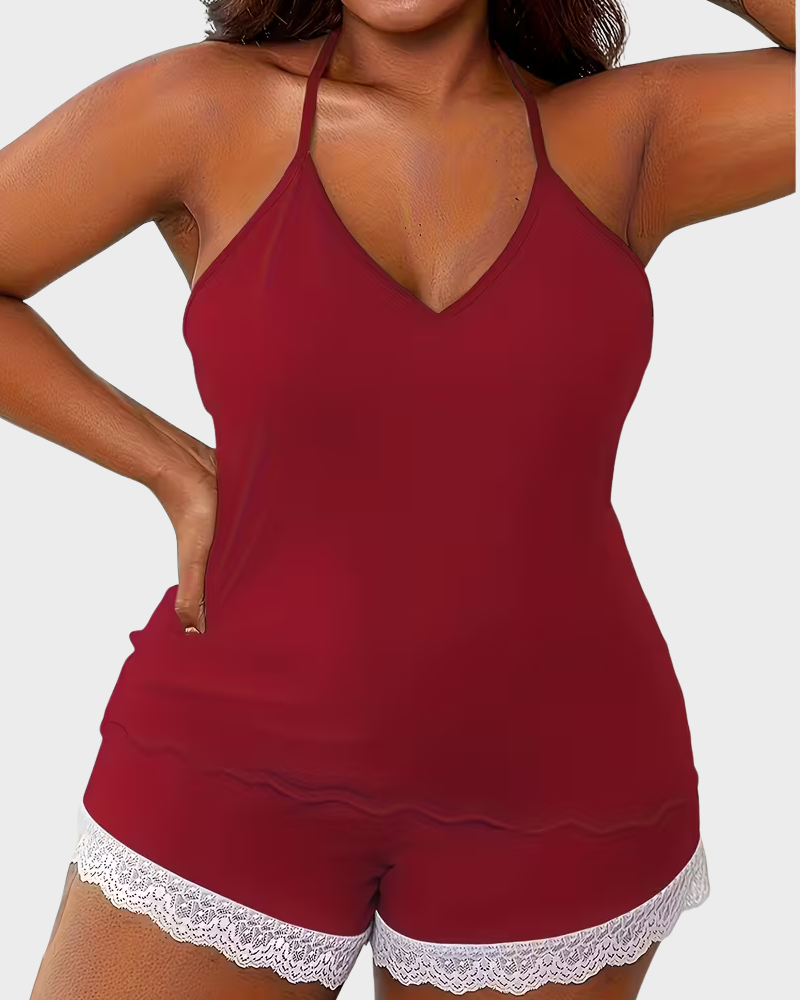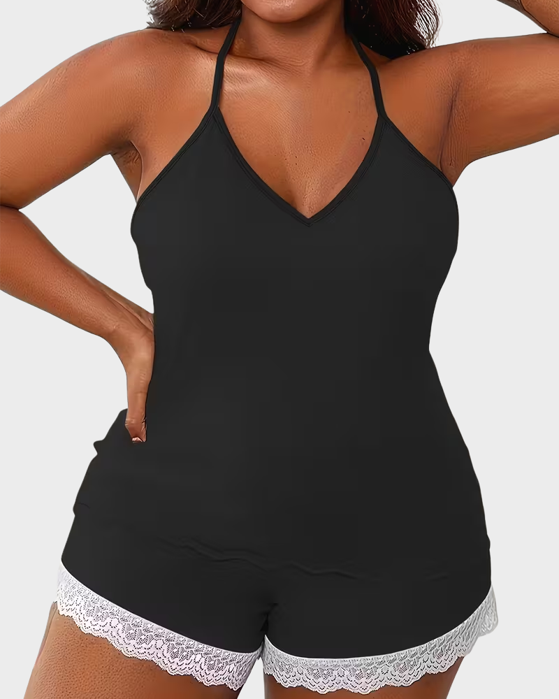 The delicate lace trim around the neckline and shorts adds a romantic touch that instantly elevates your bedtime look—elegant, flirty, and effortlessly chic.