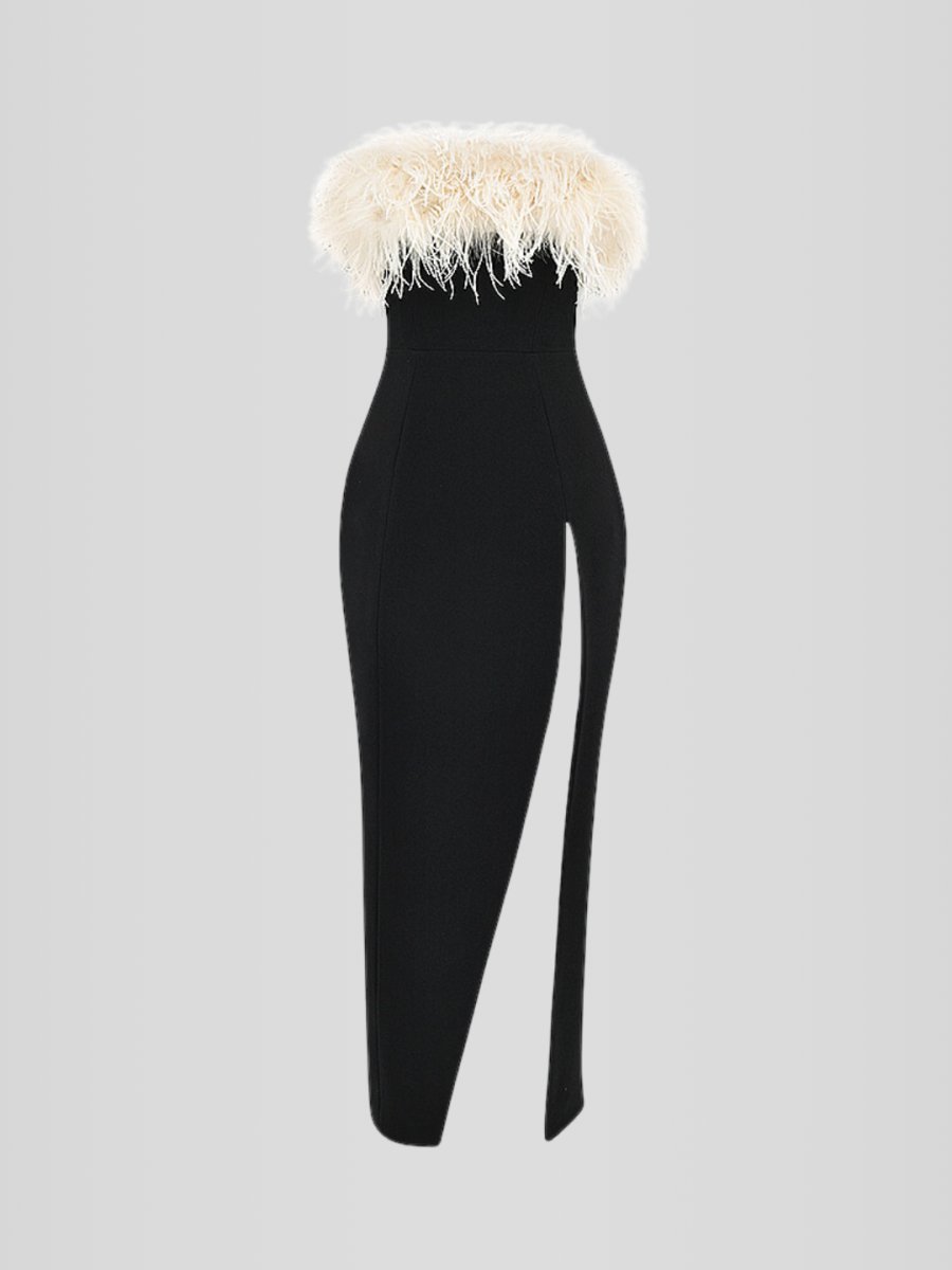 - Estilo Chique e Glamouroso : A combinação do crepe de qualidade e o acabamento em penas transformam este vestido em uma peça central para qualquer evento especial.